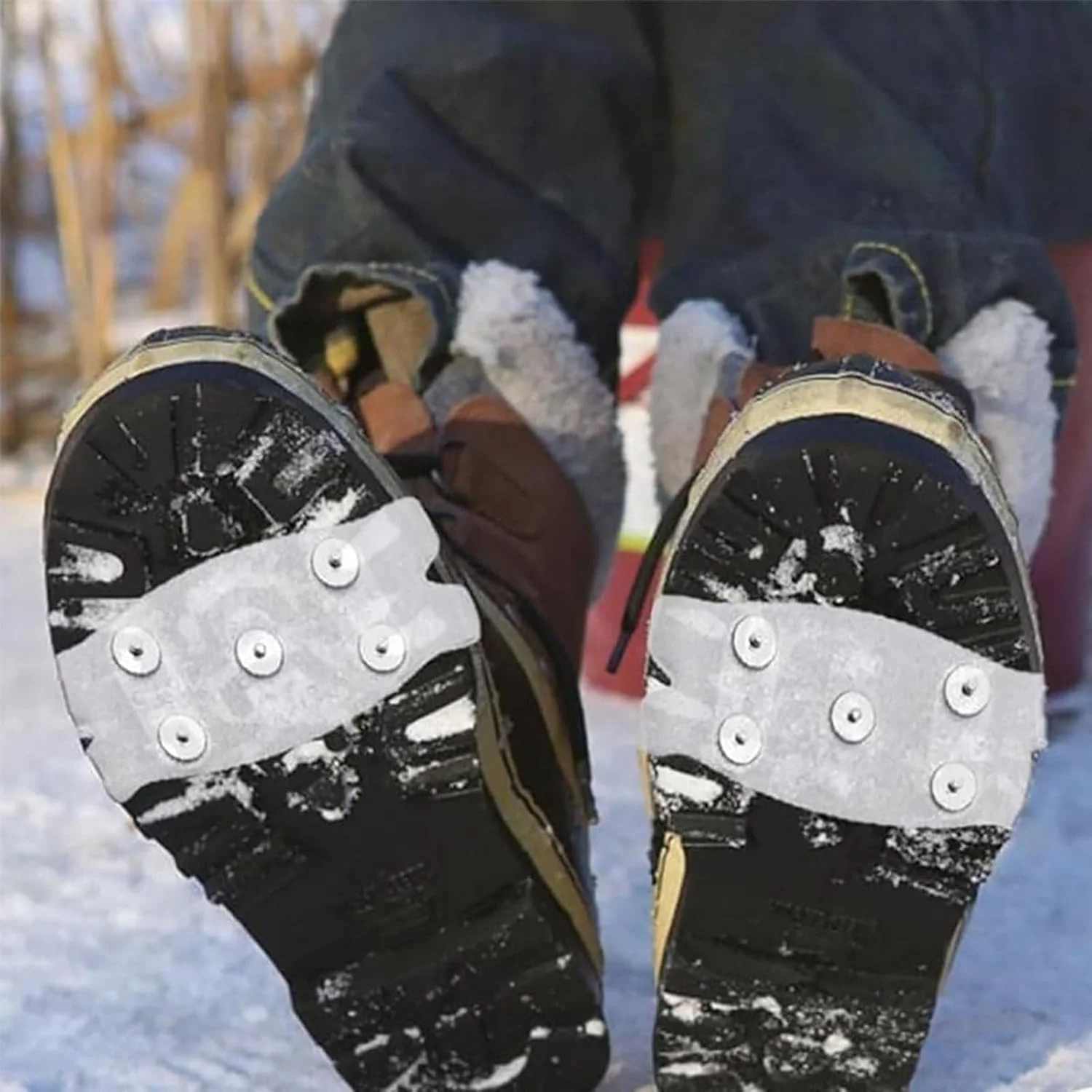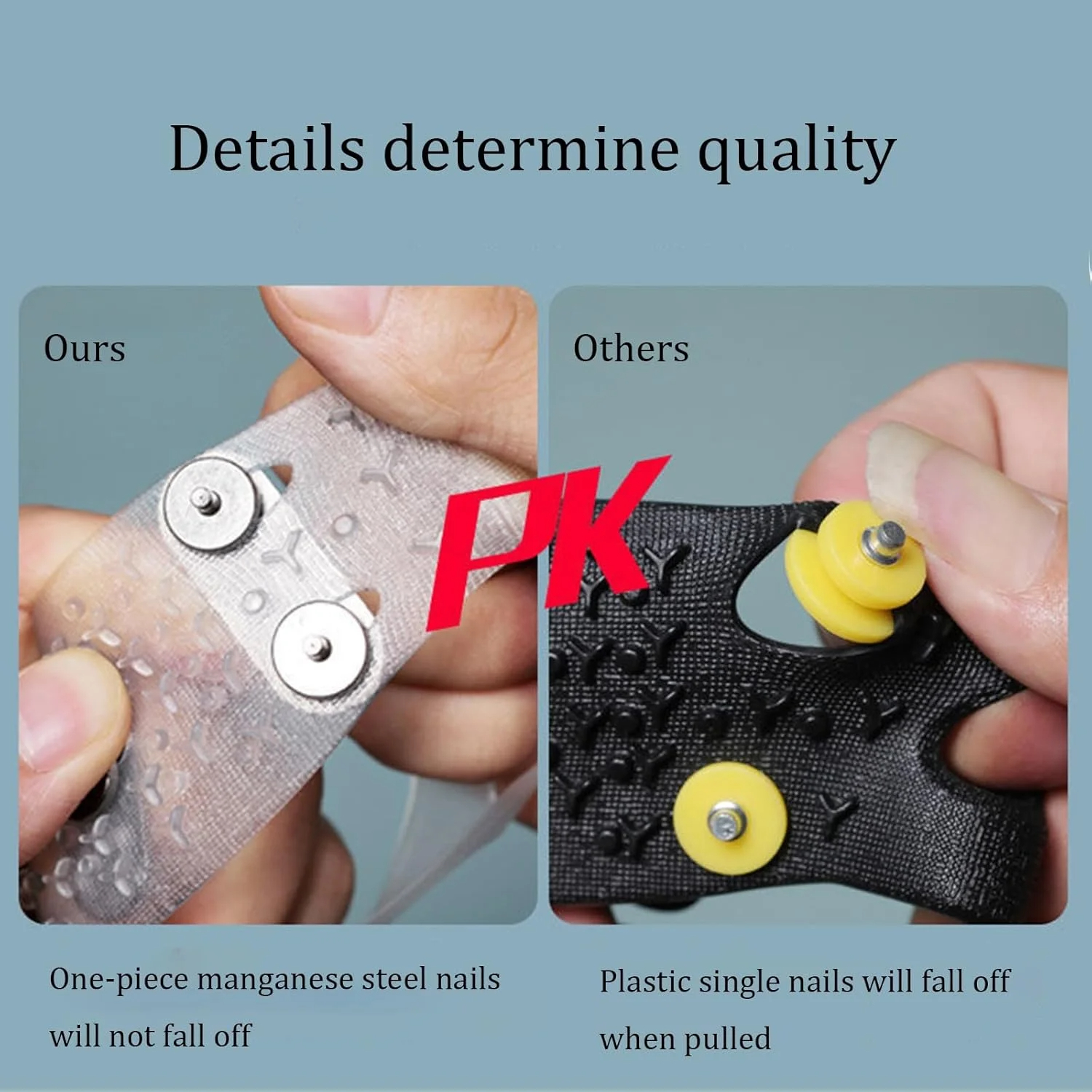 - 【Easy To Wear】These Universal Non-Slip Ice Spikes are easy to use, you just need to stretch the crampons ice cleats and put them on the front half of the shoe. When you don’t need these grippers, just remove them from the shoe.