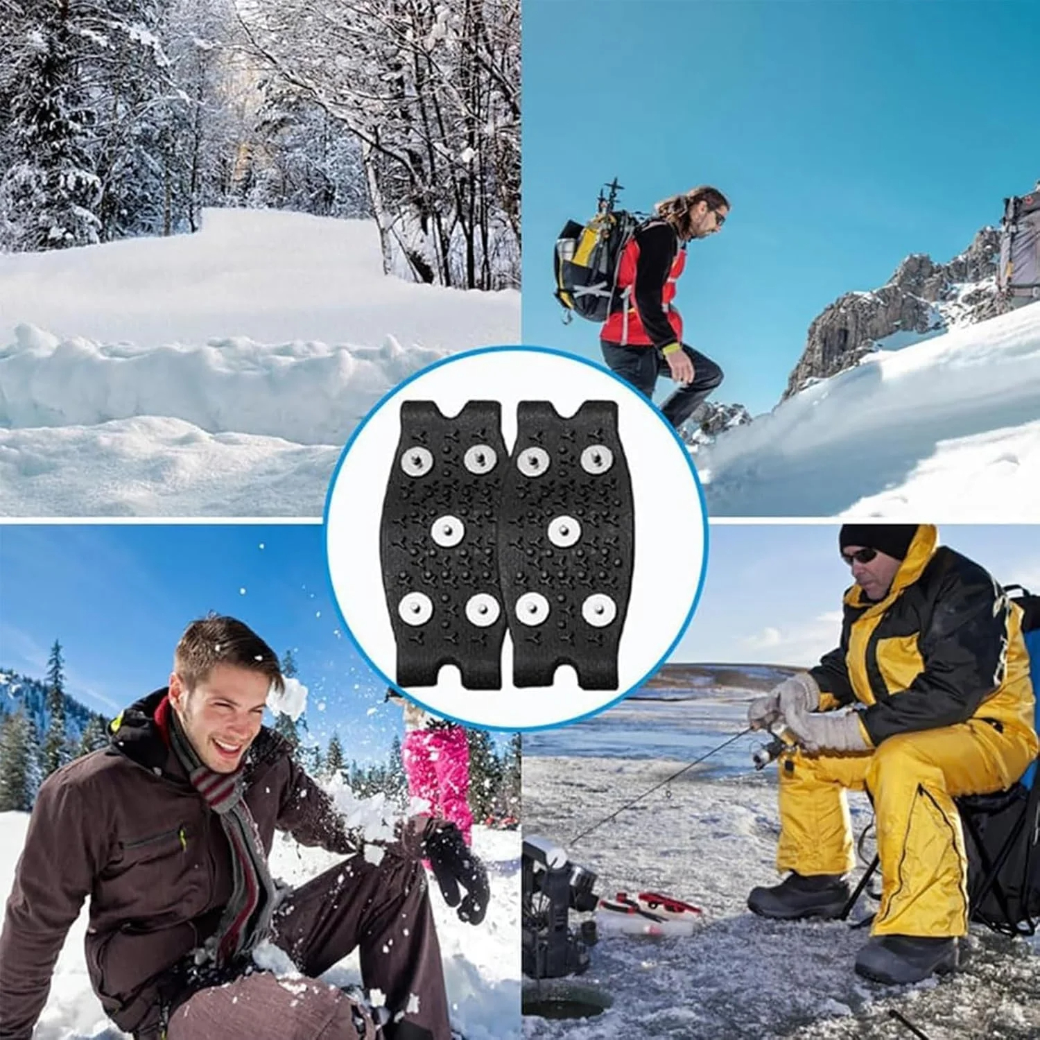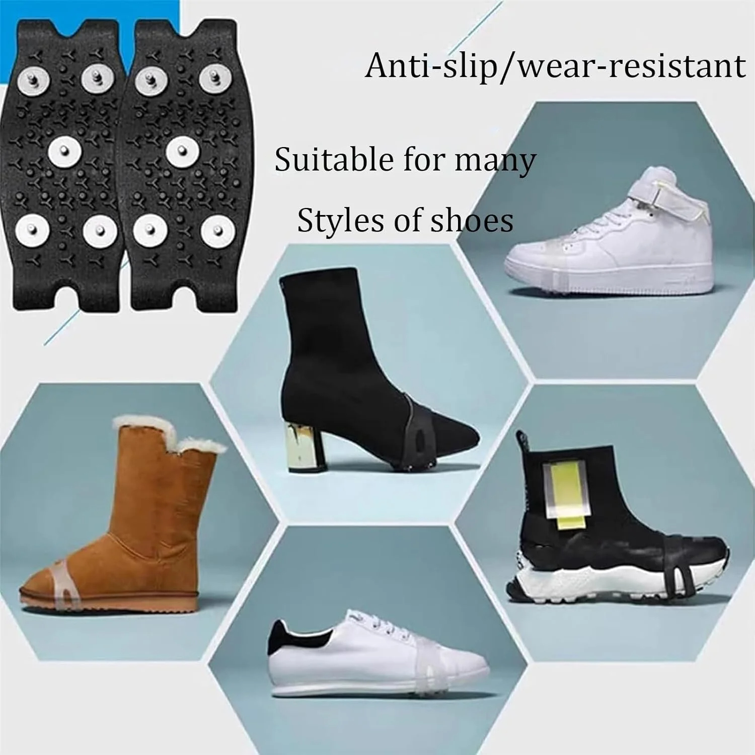 - 【Universal Size Fit】The stretch design ensures a fit for most shoe sizes, these ice grippers for shoes and boots are easy to wear and adjust, perfectly fitting a variety of outdoor shoes
