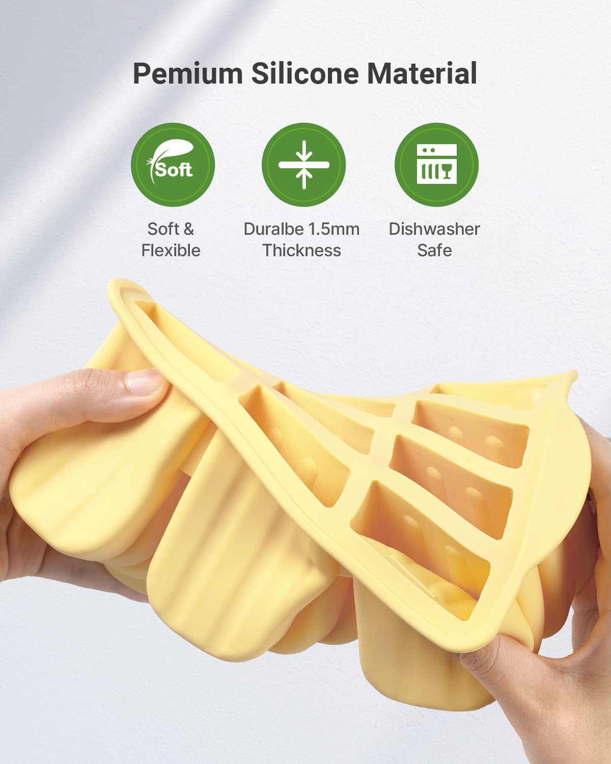 - Easy to Release Popsicles: Silicone material makes this ice pop maker easier to pull out than plastic or stainless steel Popsicle molds. Base tray with anti-slip protruding handles and soft silicone lid, so you no longer have to worry about that Popsicle mold slipping or ingredient fluid dropping when taking it into the freezer